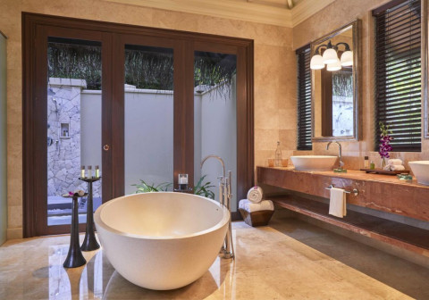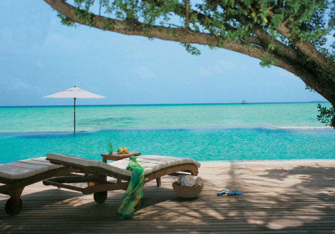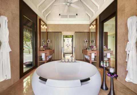 One & Two Bedroom Beach Suite with Pool (270 - 365 кв. М, індивідуальна вілла на березі з видом на захід, простора вітальня, 1-2 спальні, балкон, внутрішній дворик, душ на відкритому повітрі, індивідуальна масажна кімната (тільки в віллі з двома спальнями))