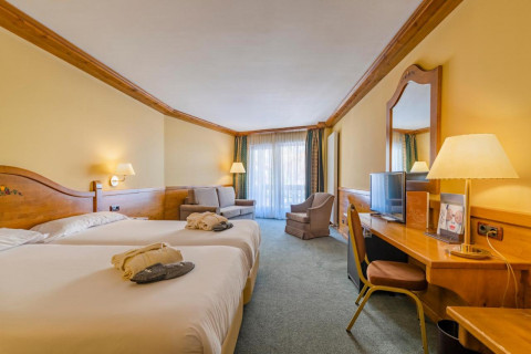 Junior Suite + SPA (50 м2, макс. 4+0 чел.) номера с кроватями twin или одной двуспальной кроватью и диван-кроватью, вид на горы,1 вход в день в водные зоны Wellness Mountain Spa для гостей старше 13 лет, в период работы спа-центра;