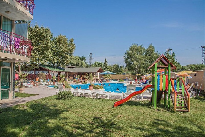 У центральній частині курортного селища Кранево, в 800м. від пляжу. 93 номери (76 двомісних номерів, 6 фамільних апартаменти, 8 люксозние апартаменти з 1 спальні та 3 апартаменти з 2-ма спальнями).