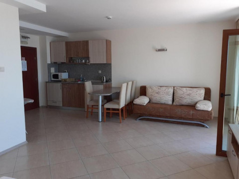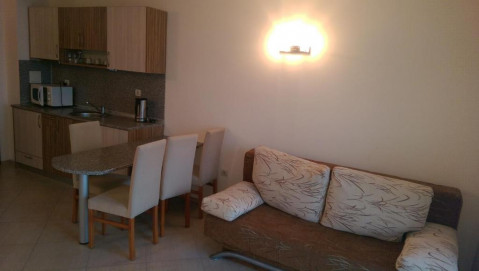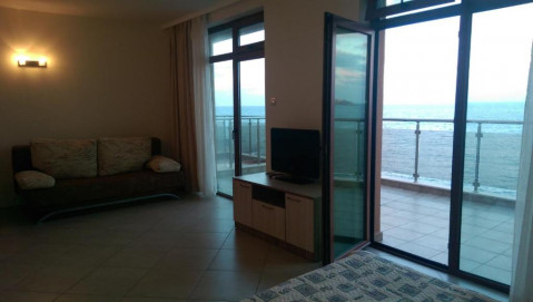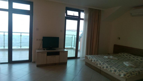 Студіо з кухонним блоком: (2 дор +2 дитини), представляє одне приміщення 40 кв. м, два ліжка, диван, кухня мікрохвильовкою, електро чайник, холодильник, телевізор, кондиціонер, інтернет, тераса 15 кв. м з видом на море, санвузол, душ.
