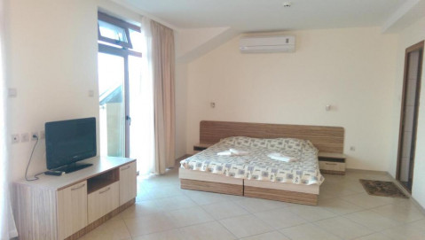 Студіоз видом на море (2 дор + 1 дитина до 12 років). У номері: душ, сан вузол, телевізор, кондиціонер, балкон, інтернет.
