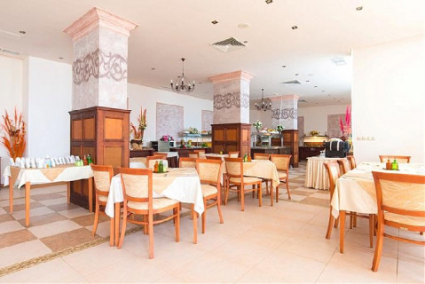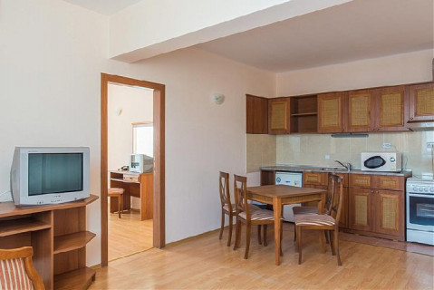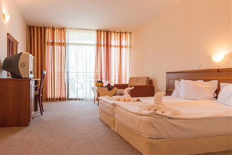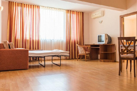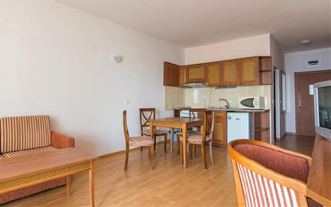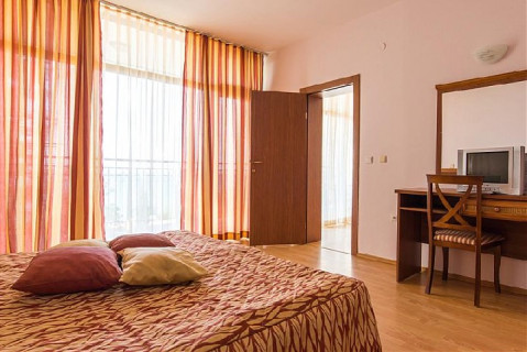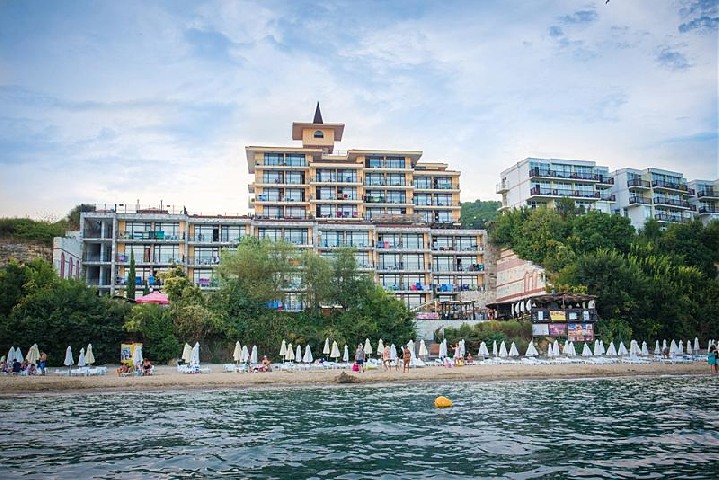 На березі моря в курортному місті Святий Влас. 89 номерів (25 двомісних, 35 апартаментів з 1 спальні, 20 апартаментів з 2-ма спальнями і 9 студії).