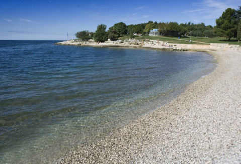 Пляжі центру відпочинку Zelena Laguna, відмічені «Блакитним прапором» (скелясті плато і бетоновані платформи), поруч з готелем. На пляжі душ, ресторани і бари; шезлонги і парасольки - за дод. плату; шезлонги біля басейну - безкоштовно.