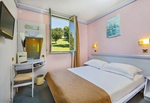 Готель має одне з найбільш зручних місць розташування - більшість екскурсій починається безпосередньо від нього, поруч - зупинка автопоїзда і пристань, від якої йде катер в Пореч. В готелі зусиллями персоналу створена дуже тепла і домашня обстановка. Номери - невеликі, але затишні, оформлені в хорошому стилі і мають практично все необхідне для відпочинку. Телевізори встановлені на спеціальній підставці практично під стелею. У готелі не дозволяється розміщення з тваринами.