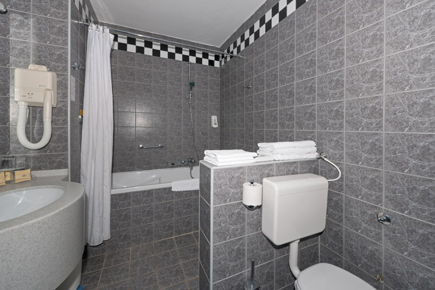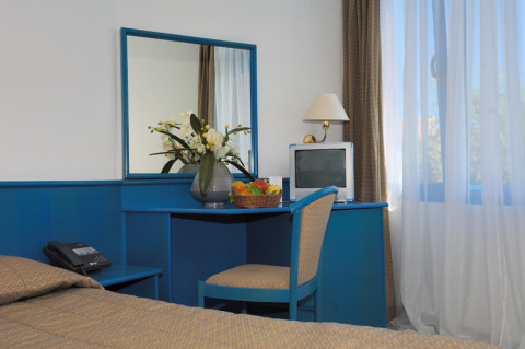 У номері: балкон, кондиціонер, телевізор (супутникове ТБ), телефон, сейф, ванна кімната з душем або ванною, туалет, фен, холодильник (в Suites). Пол - кахель. Всі номери для некурящих.