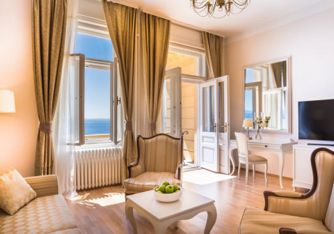 Deluxe Suite (40-50 кв.м., два балкона, вид на море, спальня, вітальня, ліжко king-size (210 x 200 см), софа, макс 3 дор.)