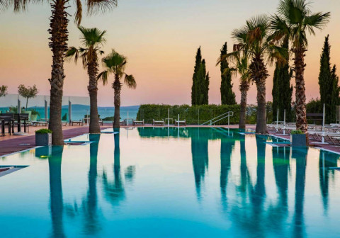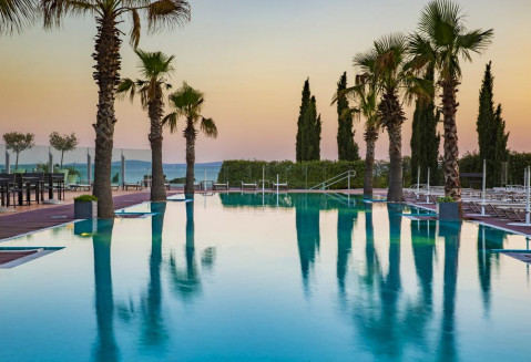 Спа: расслабляющий 18-метровый бассейн в форме лагуны с шезлонгами для подводного плавания, гидромассаж, талассотерапия, процедурные кабинеты, зона для отдыха, Спа-бар, тепидариум, парк саун (соляная, хаммам, аромасауна, финская), 2 Спа-сьюта для особого комфорта пар).