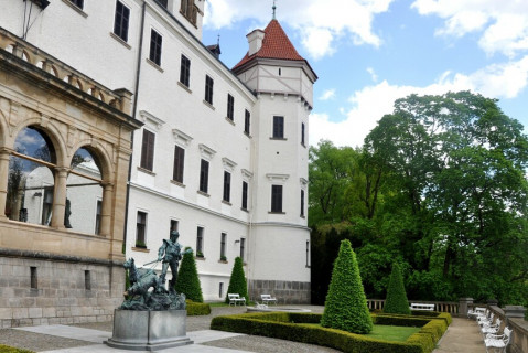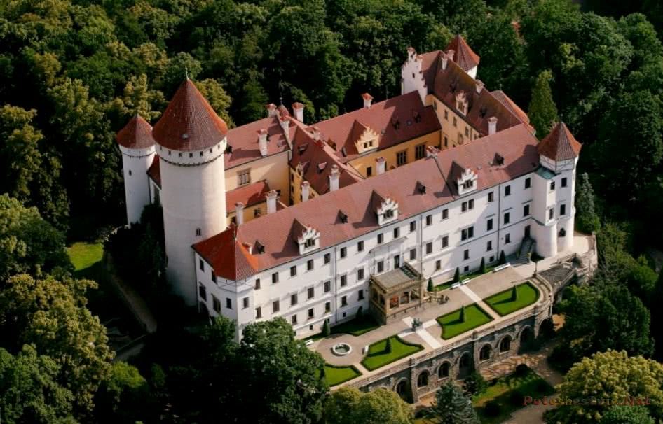 Замок Конопіште знаходиться в 50 км від Праги. Заснований в 13 ст. як фортеця, Конопіште сьогодні - це величезний замково-парковий комплекс з англійським парком, мармуровими скульптурами і розарієм.