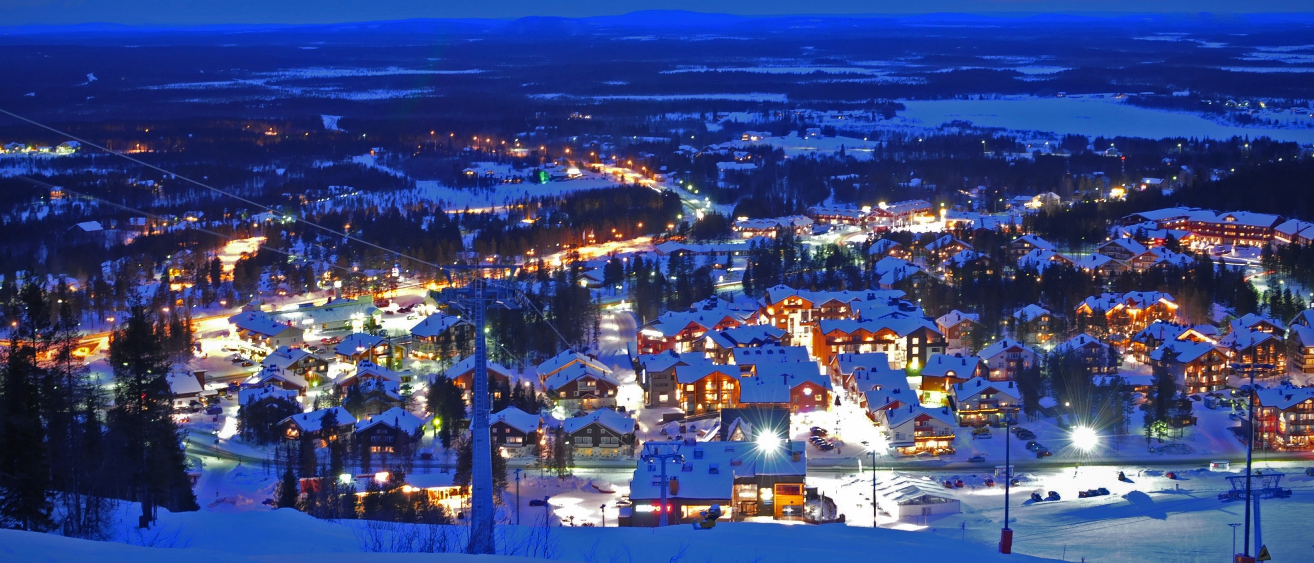 На курорті - сама розгалужена мережа трас для снігоходів (більше 600 км), рівнинних лиж (понад 230 км, з них 23 км висвітлені).
