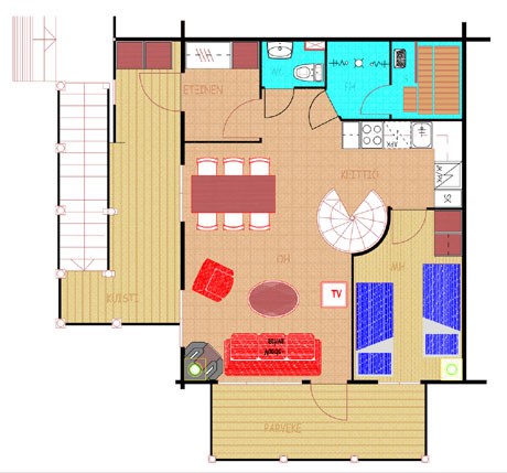 Дворівневий апартаменти, площа першого поверху 48 m² + верхній поверх 22 m².