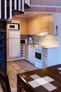 Кухонна плита / духовка, посудомийна машина, посуд, кухонне приладдя, холодильник і морозильна камера, мікрохвильова піч, електричний чайник, кавоварка, тостер, CD-плеєр, DVD, телевізор, сушильну шафу для одягу, праска і прасувальна дошка, фен, дрова, розетка для обігріву двигуна одного автомобіля, приміщення для зберігання лиж (закривається на ключ).