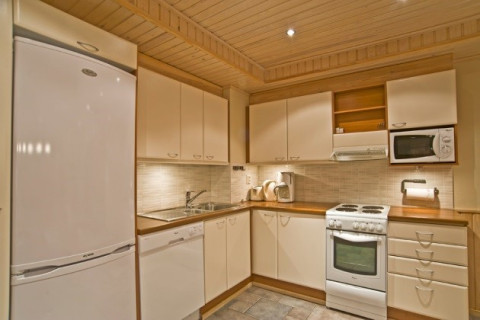 Кухонна плита / духовка, посудомийна машина, посуд, кухонне приладдя, холодильник і морозильна камера, мікрохвильова піч, електричний чайник, кавоварка, тостер, CD-плеєр, телевізор, DVD, сушильну шафу для одягу, праска і прасувальна дошка, фен, кондиціювання, дрова, розетка для обігріву двигуна одного автомобіля, бездротовий доступ до Інтернету, на другому поверсі будівлі загальне приміщення для зберігання лиж.