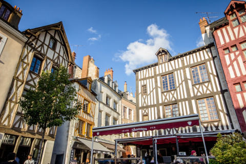 Старе місто розташоване на північному березі Луари. До одних з головних міських пам'яток відносяться Особняк Гроло 1550 р. у бургундському стилі, Стара ратуша (1513-1519 рр.), Собор Сент-Круа 1278 г, Будинок Жанни Д'арк, (належав скарбникові герцога Орлеанського), в якому вона провела декілька днів в квітні і травні 1429 р., Історичний Музей, Колегіальна церква святого Петра XIV ст., Кріпта церкви Сен-Аньян 1029 р. і сама церква XII ст., музей образотворчого мистецтва, церква моряків Нотр-Дам-де-Рекувранс і "будинок Діана де Пуатьє" XV ст., палац Франциск I і Аньєси Сорель XV ст., міст Георга V і ботанічний сад. Однією з головних пам'яток міста вважається і пам'ятник Орлеанській діві, встановлений на головній площі міста Place du Martroi.