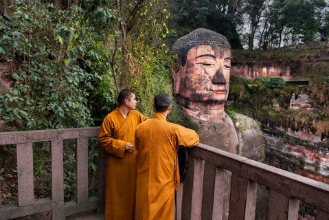 У провінції Китаю Сичуань, під містом Лешань, прямо в скелі вирізьблена величезна скульптура Будди висотою 71 метр — одна з найдавніших у світі скульптур. Пам'ятка Китаю у вигляді гігантського Будди розташований у місці злиття трьох річок, зустрічні потоки яких утворюють небезпечні коловороти. В цих потоках загинуло чимало місцевих жителів і рибалок, тому, згідно з переказами, чернець Хай Тун вирішив приборкати стихію, вирубавши в скелі образ божества. В 713 році він приступив до роботи, але за роки свого життя він встиг викресати гігантська статуя Будди тільки до колін, а пізніше продовжили роботу послідовники ченця, і приблизно через століття статуя була готова.