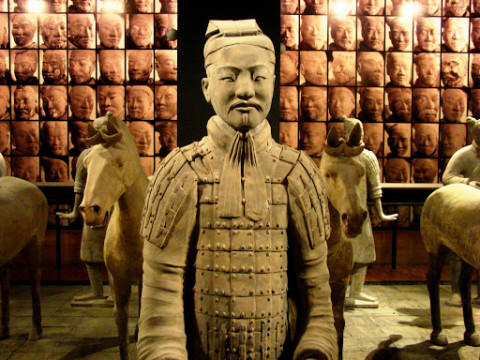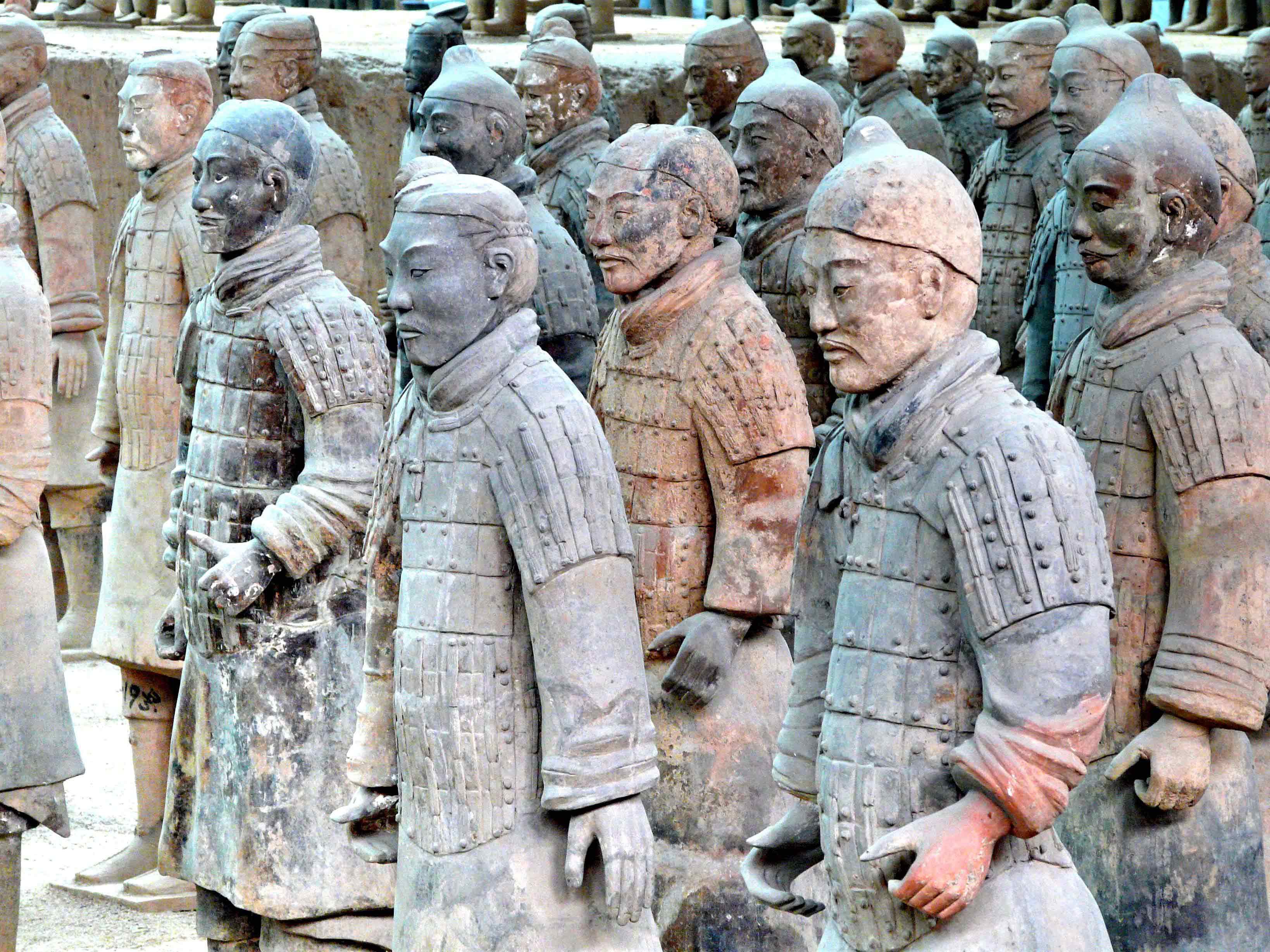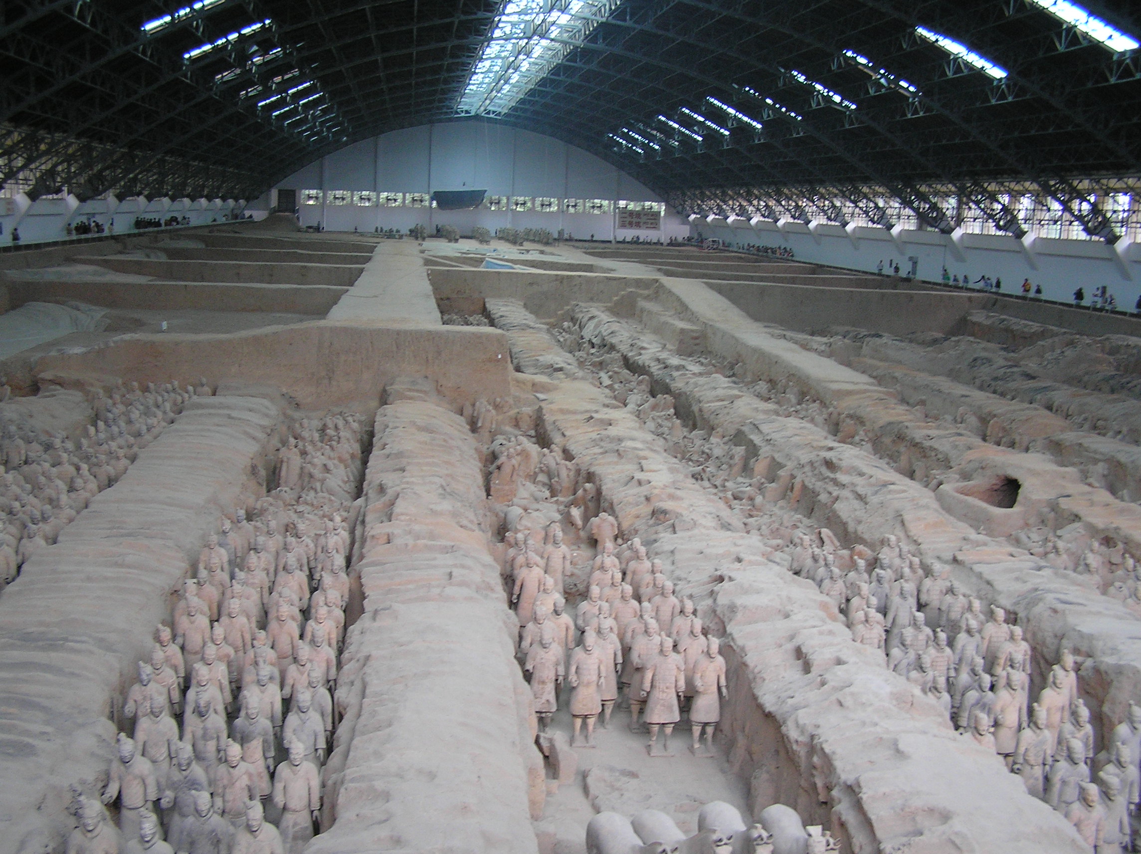 Недалеко від міста Сіань в провінції Шеньсі, розташовується величезна за розмахом пам'ятка Китаю — багатотисячний військовий гарнізон, але не військових, а глиняних статуй зростанням 1,9 — 1,95 метра. Це чудо світу відомо як Теракотова армія, а його історія налічує понад 2 тисяч років. Всього підземні поховання включають мінімум 8099 статуй китайських воїнів і їх коней, виготовлених з теракотової глини. Незвичайна глиняна армія була похована з першим імператором Цинь-Шинь Шихуанді, що об'єднав царства Китаю в єдину державу.