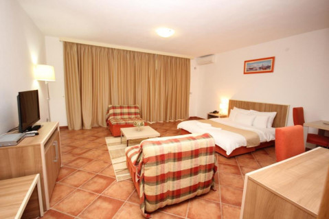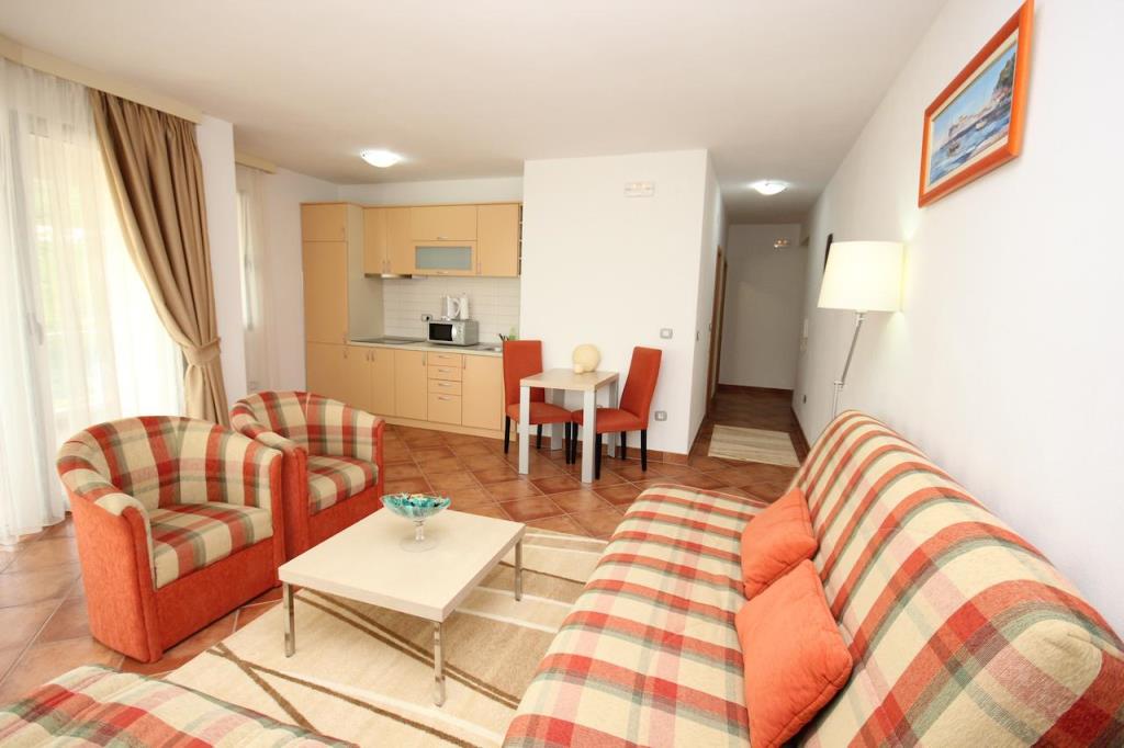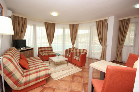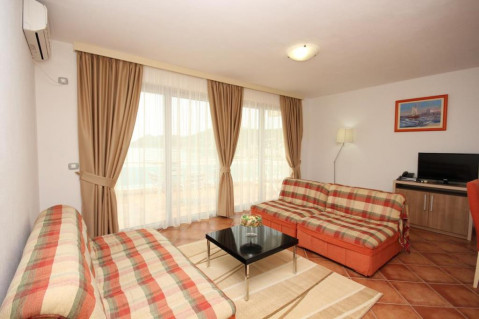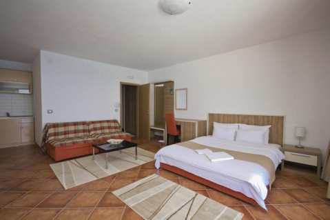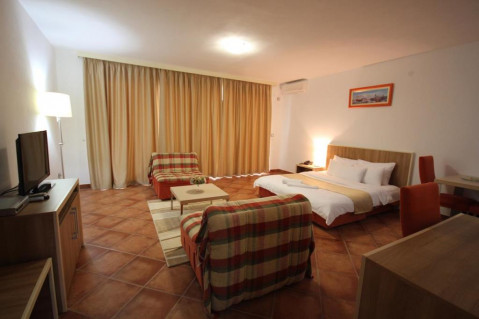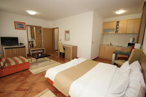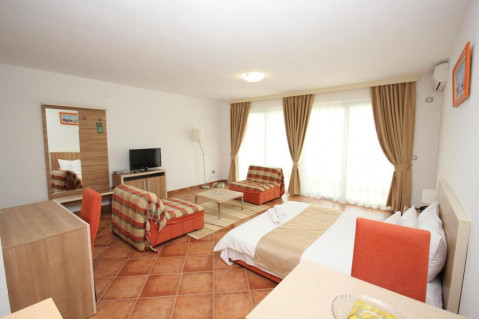 В АРР 1 BED ROOM: двокімнатний номер, в спальні французьке ліжко, в вітальні розкладний диван, міні-кухня, ванна кімната, кондиціонер, супутникове телебачення, сейф, простора тераса. Максимальне розміщення 4 людини.
