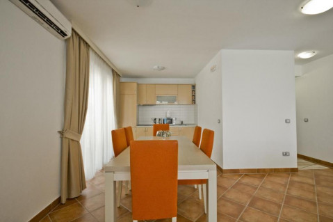 В АРР 3 BED ROOM: вітальня із зоною відпочинку, повністю обладнана кухня, їдальня зона, 2 спальні c французькими ліжками і третя спальня з односпальним ліжком, кондиціонер, супутникове ТБ, Wi Fi інтернет, два санвузли з душовими кабінами, простора тераса. Максимальне розміщення 6 осіб (5 + 1 exb).
