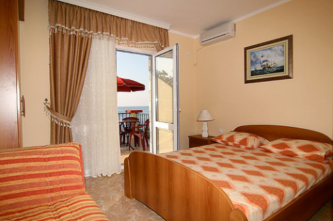 В апартаменті: Двокімнатний номер, в спальні - французьке ліжко, в залі - диван, кондиціонер, кабельне телебачення, міні-кухня, кухонне начиння, ванна кімната, тераса з видом на море.