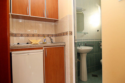 В студіо: Французьке ліжко, розкладне крісло, кондиціонер, кабельне телебачення, міні-кухня, кухонне начиння, ванна кімната, тераса з видом на море.