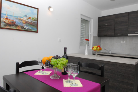 В APP 04 SV-1 BR: вітальня з диваном і повністю обладнаною кухнею, спальня з французької або роздільними ліжками, кондиціонер, супутникове ТБ, Wi Fi інтернет, санвузол з душовою кабіною, балкон з видом на море, відкривається захоплюючий вид на прекрасне село Пераст та знамениті острови Gospa od Skrpjela і Sveti Dordje. Максимальне розміщення: 2+2 людини. Площа: 50 м2.