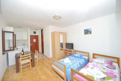 В STUD 02 SV: французьке ліжко або два окремих ліжка, кондиціонер, супутникове ТБ, міні кухня, чайник, холодильник, санвузол з душовою кабіною, балкон з видом на море. Площа: 28 м2. Максимальне розміщення 2 людини.