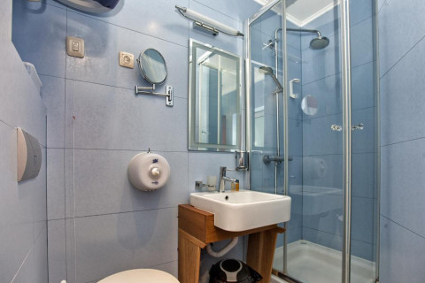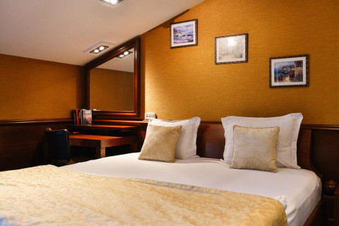 В DBL SUPERIOR №5: однокімнатний номер з французьким ліжком, розташований на першому поверсі, кондиціонер, супутникове ТБ, Wi Fi інтернет, сейф, санвузол з душовою кабіною, вид на море. Площа номера 20 м2. Максимальне розміщення: 2 людини.