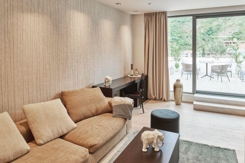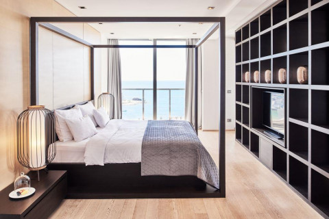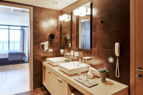 В DBL JUNIOR SUITE SSV: двокімнатний номер, у вітальні зона відпочинку з диваном, в спальні французьке або окремі ліжка, кондиціонер, супутникове ТБ, Wi Fi інтернет, міні бар, сейф, телефон, санвузол з душовою кабіною, два балкона з боковим видом на море. Площа: 60 м2. Максимальне розміщення: 2 дор.