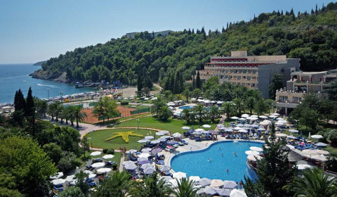 В 50м від готелю знаходиться власний дрібно-гальковий пляж. Шезлонги і парасольки - платно, в залежності від ряду, щодо моря.