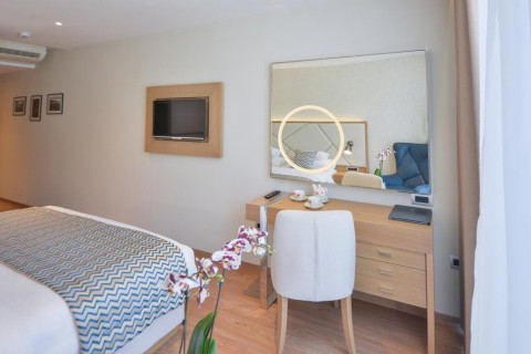 B DBL SV: в номері французьке або окремі ліжка, кондиціонер, супутникове ТБ, Wi Fi інтернет, пряма телефонна лінія, міні бар, сейф, санвузол з душовою кабіною, фен, косметика, халати і тапочки, балкон з фронтальним видом на море. Площа: 22 м2. Максимальне розміщення: 2 чол.