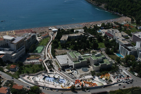 У селищі Бечічі, в 2км від Будви (3 євро - таксі, 1,5 євро - міський автобус Mediteran Express). В 300м від пошти, в 50 м через дорогу знаходиться магазин і аптека.