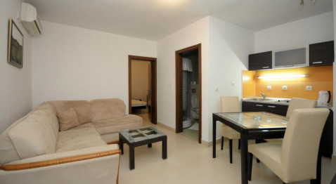 У центрі Будви, в 100 м від центрального ринку і супермаркету, в 100 м від пошти, в 250 м від Старого міста і пляжу Могрен. В 30м найближчий ресторан «L & M». У 23 км від аеропорту Тіват і в 60 км від аеропорту Подгоріца.