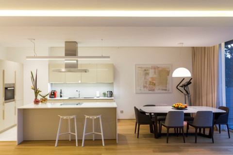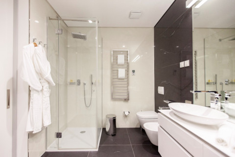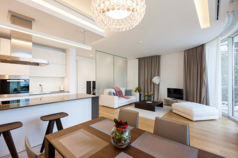 В RESIDENCE 1 BR: Площа-80-100 м2. Вітальня і спальня з французьким або роздільними ліжками, кондиціонер, телефон, високошвидкісне підключення до інтернету та мережі Wi Fi, широкоформатний ТВ, міні-бар, сейф, room service 24 години, ванна кімната з ванною, фен, кухня з усім необхідним для приготування чаю та кави, приватна тераса з меблями та джакузі (вибірково). Максимальне розміщення - 2 дорослих + 1 дитина до 12 років.