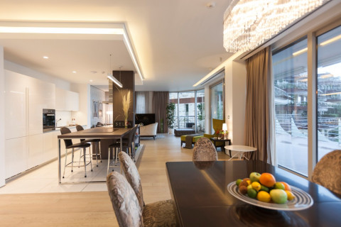 В PENTHOUSE 3 BR: Площа-300-500 м2. Вітальня і три спальні з французьким або роздільними ліжками, кондиціонер, телефон, високошвидкісне підключення до інтернету та мережі Wi Fi, широкоформатний ТВ, міні-бар, сейф, room service 24 години, ванна кімната з ванною, фен, кухня з усім необхідним для приготування чаю та кави, приватна тераса з меблями і джакузі (вибірково). Максимальне розміщення - 6 дорослих + 1 дитина до 12 років.