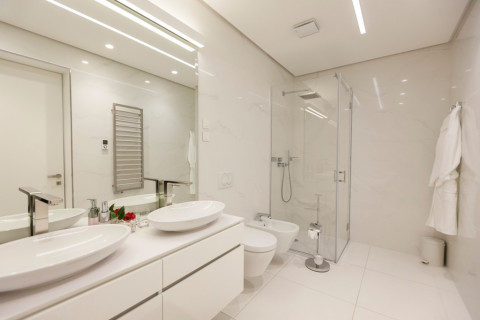В RESIDENCE 2 BR: Площа-110-150 м2. Вітальня і дві спальні з французьким або роздільними ліжками, кондиціонер, телефон, високошвидкісне підключення до інтернету та мережі Wi Fi, широкоформатний ТВ, міні-бар, сейф, room service 24 години, ванна кімната з ванною, фен, кухня з усім необхідним для приготування чаю та кави, приватна тераса з меблями і джакузі (вибірково). Максимальне розміщення - 4 дорослих + 1 дитина до 12 років.