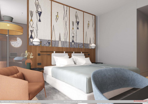 Стильний зелений готель, розташований на морському узбережжі, складається з комплексу вілл та готелю.