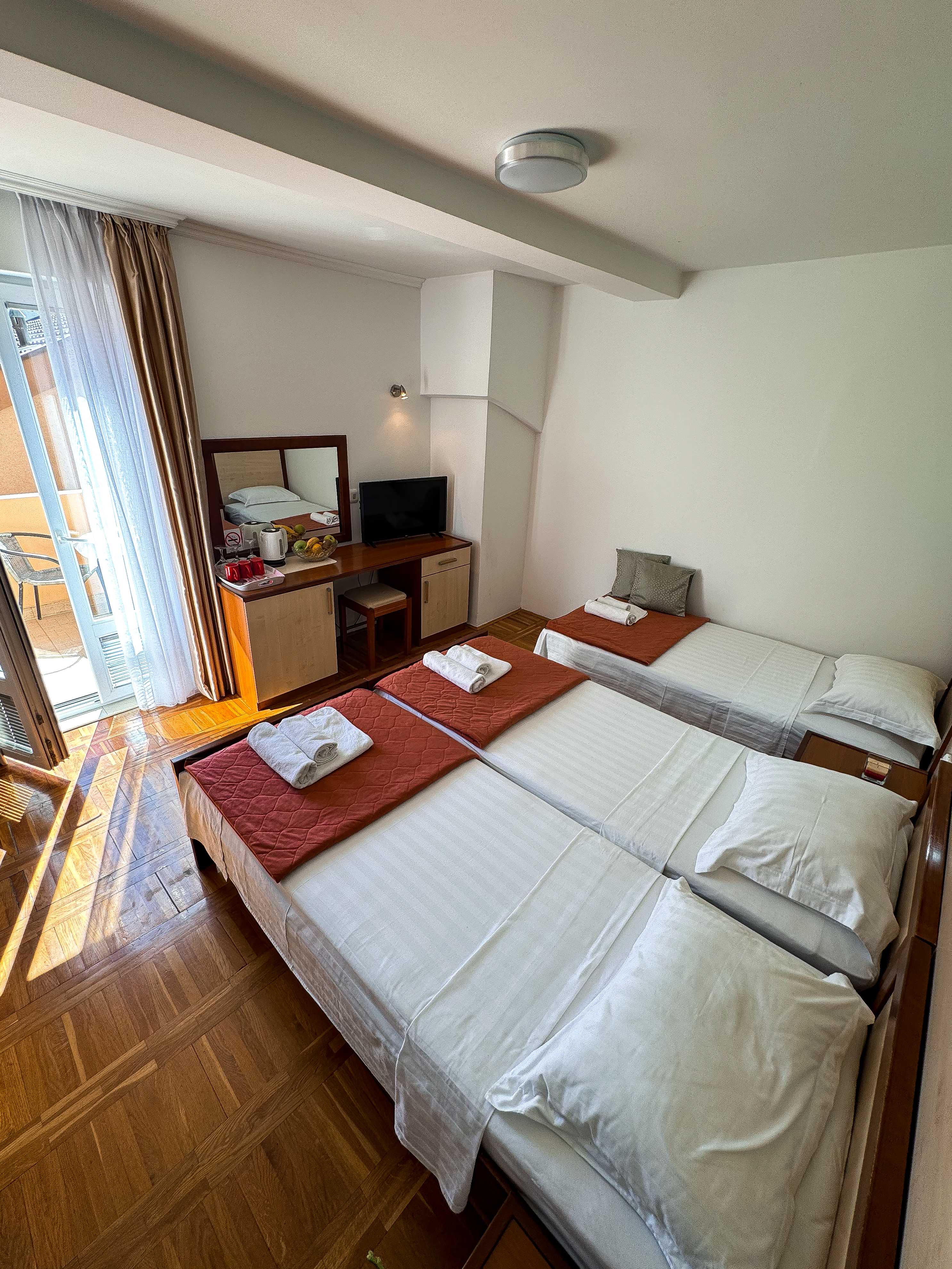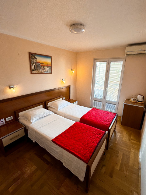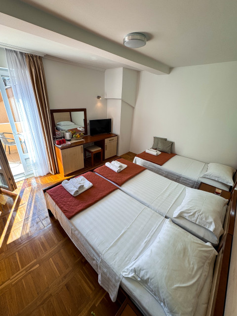 STANDART/TRPL room: стандартний тримісний номер, площа до 25 м2, кондиціонер, міні-холодильник, санвузол, балкон, двоспальне ліжко та односпальне ліжко, або 3 роздільні ліжка.