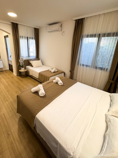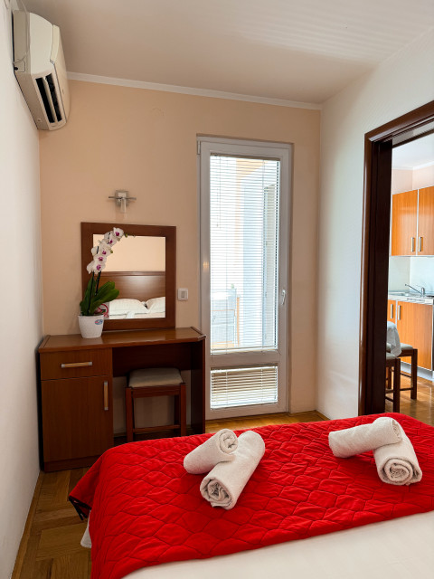 APARTMEN for 3 pax: апартаменти для 3 осіб, площа до 25 м2, кондиціонер, міні-кухня, міні-холодильник, санвузол, балкон, двоспальне ліжко та односпальне ліжко.