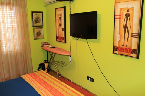 У спальні - французьке ліжко, шафа, телевізор (плазма), кондиціонер, вихід на балкон.