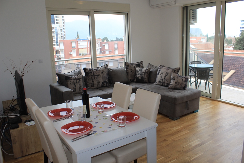 У центрі Будви, в 100 м від центрального ринку і супермаркету, в 100 м від пошти, в 250 м від Старого міста і пляжу Могрен.