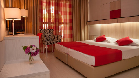 В STD 4*: Відповідає категорії 4*, однокімнатний номер, французьке або роздільне ліжко, кондиціонер, кабельне телебачення, холодильник, фен для волосся, сейф, ванна або душова, халати та капці, балкон/тераса (або їх відсутність), доплата за балкон - 2 євро за людини.