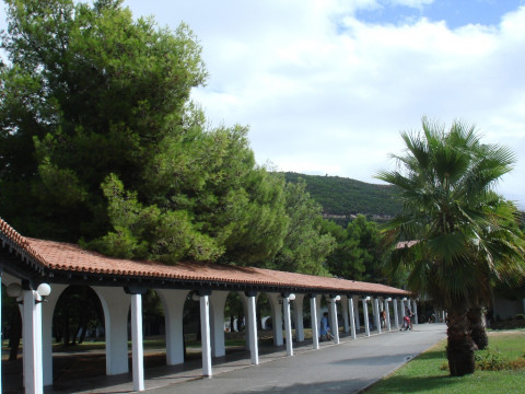 В 50м від готелю, муніципальний дрібно-гальковий пляж. Лежаки і парасольки - платно. На пляжі знаходяться водні гірки, є можливість взяти напрокат катамарани.