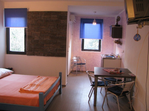 В STUD: номери розташовані на першому поверсі. Перед входом - тераса з видом на море. Французьке ліжко, розкладне крісло, кухня, телевізор, кондиціонер, душ, туалет.