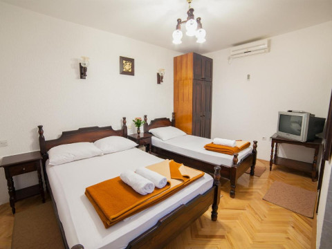 однокомнатный номер, две двуспальные кровати, кухня, кабельное ТВ, кондиционер, стиральная машина, терраса, WiFi.