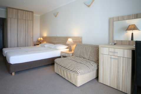 В SUPERIOR: Площа - 30м2, двомісний номер, можливість додаткового ліжка, кондиціонер, телевізор, сейф (безкоштовно), міні-бар (за додаткову плату), тераса, ванна кімната, фен. Максимальне розміщення - 3 чол. Номери знаходяться як в головному корпусі, так і в вилах.