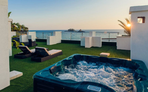 В APP SUPERIOR: Площа - 60 м2. Спальня, вітальня з розкладним диваном. Всі апартаменти без кухні, з кондиціонером, телефоном, SAT-TV, ванною кімнатою з ванною, феном, міні-баром, сейфом, терасою. Максимальне розміщення - 4 чол. Номери знаходяться в головному корпусі.