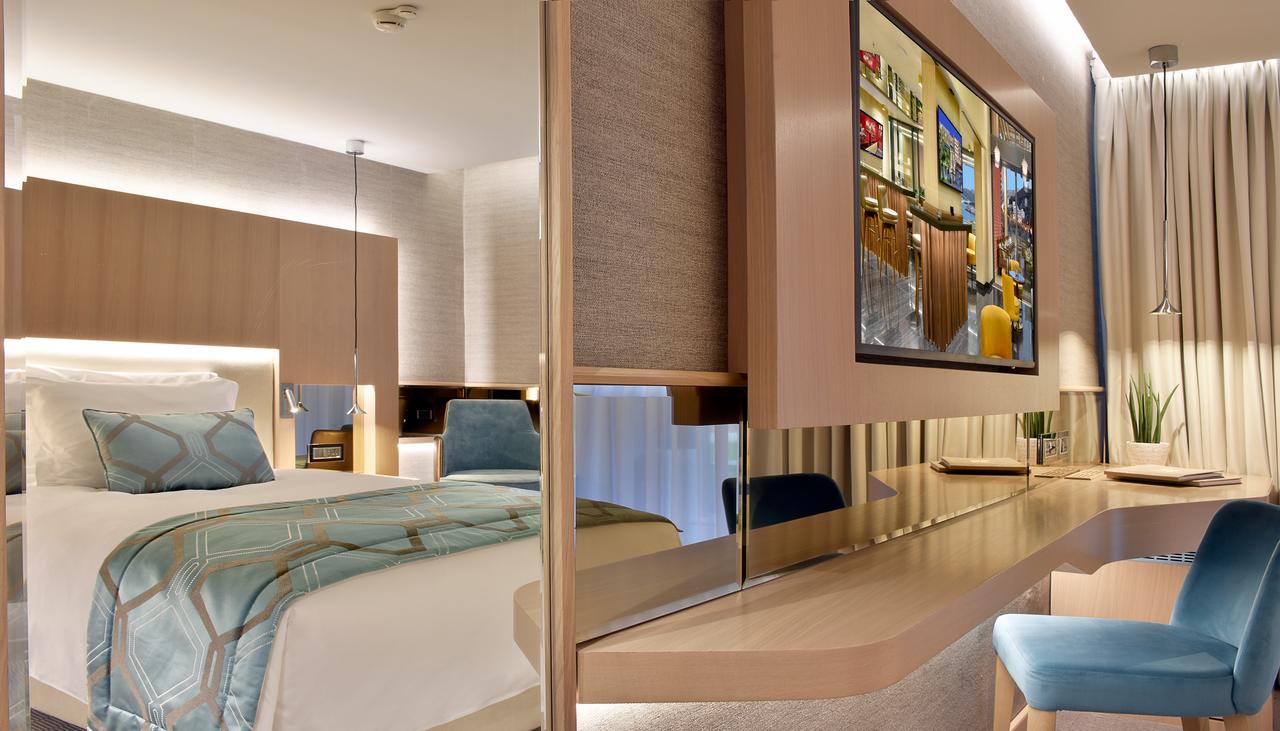 В SUPERIOR SV: велике французьке ліжко, кондиціонер, супутникове ТБ, пряма телефонна лінія, Wi Fi інтернет, міні бар, сейф, cанузел з душовою кабіною, фен, халати, тапочки, балкон з видом на море. Площа: 33 м2. Максимальне розміщення: 2 дорослих + 1 дитина.