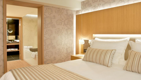 В SUITE DELUXE: вітальня та спальня, або велике французьке ліжко або два роздільних, кондиціонер, супутникове ТБ, пряма телефонна лінія, Wi Fi інтернет, два cанузла, з душовою кабіною і джакузі, фен, халати, тапочки, міні-бар, кава машина, сейф, балкон з видом на море. Площа: 80 м2. Максимальне розміщення: 2 людини.