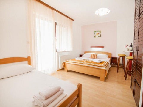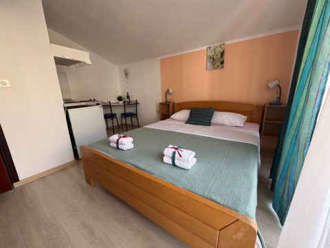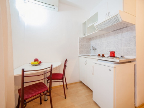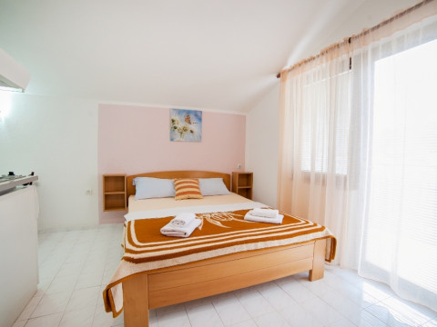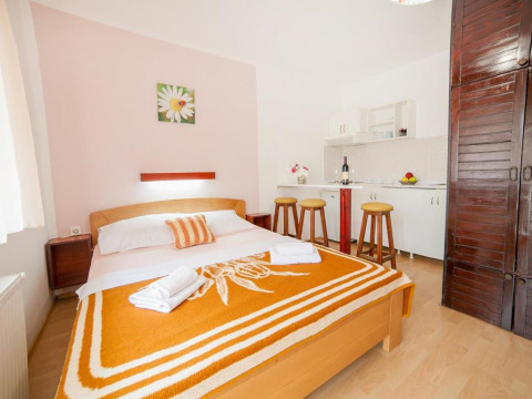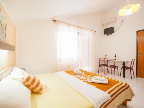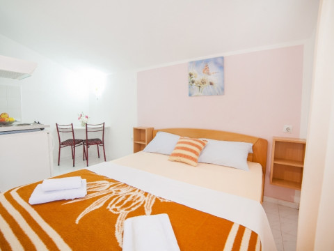 В STUD 03: однокімнатний номер, французьке ліжко і повноцінна додаткове ліжко, повністю обладнана кухня, кондиціонер, супутникове ТБ, Wi Fi інтернет, санвузол з душовою кабіною, балкон. Максимальне розміщення: 3 дор.