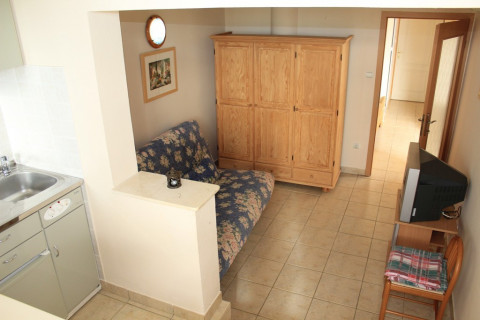 В АРР: двокімнатний номер, в спальні - французьке ліжко, у вітальні - розкладний диван. Міні-кухня, необхідний посуд, кондиціонер, холодильник, телевізор, душова кімната, балкон з прямим видом на море. Максимальне розміщення - 4 дорослих.