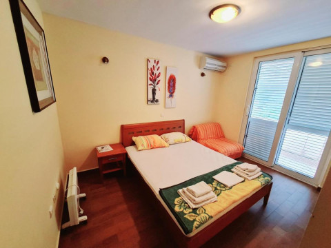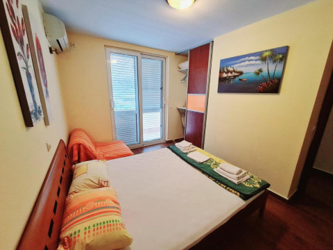 У селищі Рафаїлович, в 50 м від найближчого магазину. В 4 км від Будви (2 євро - міський автобус Olimpia Express). Відстань до аеропорту Тіват -27 км, до аеропорту Подгоріца -57 км.
